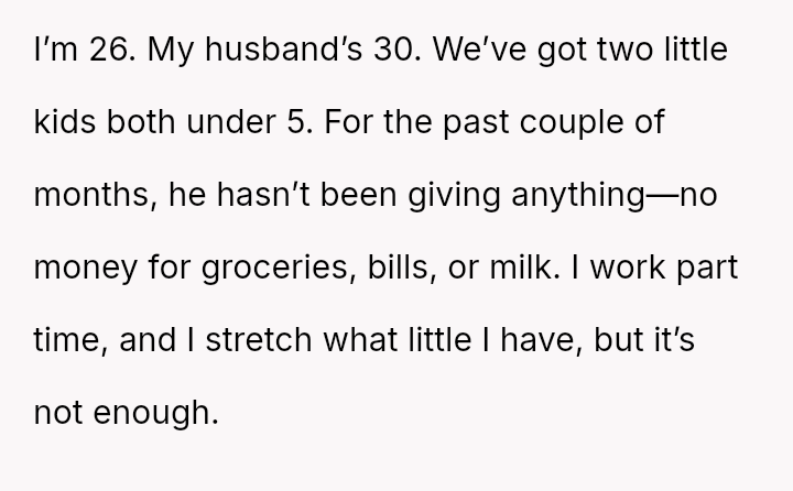 At just 26, with two little children depending on her, she was left to bear the weight of a silent, cold neglect—her husband’s absence felt not just in presence but in the very essentials of life: food, money, care.
