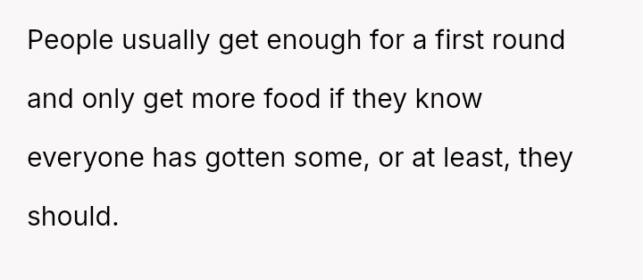 The haunting image of endless seconds and stolen leftovers stands as a poignant symbol of imbalance and desperation.