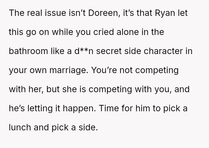 But love became complicated under the shadow of Doreen, Ryan’s mother, whose presence loomed too close and whose words cut deeper than expected.