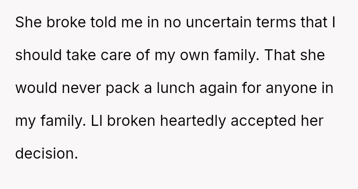 What began as quiet support turned into a battleground for approval, where every sandwich packed was a challenge, every note questioned.