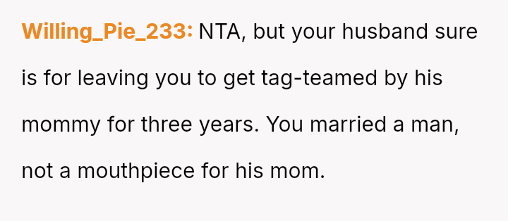 Was the OP justified in confronting her mother-in-law directly when feeling repeatedly disrespected, even if it caused immediate friction with her husband and mother-in-law, or should she have relied solely on her husband to manage his parent’s interference to maintain marital peace?