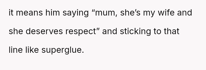 Her husband's neutral response did not immediately support her, creating distance between the couple.
