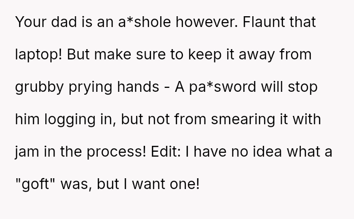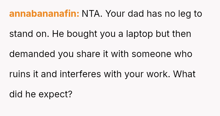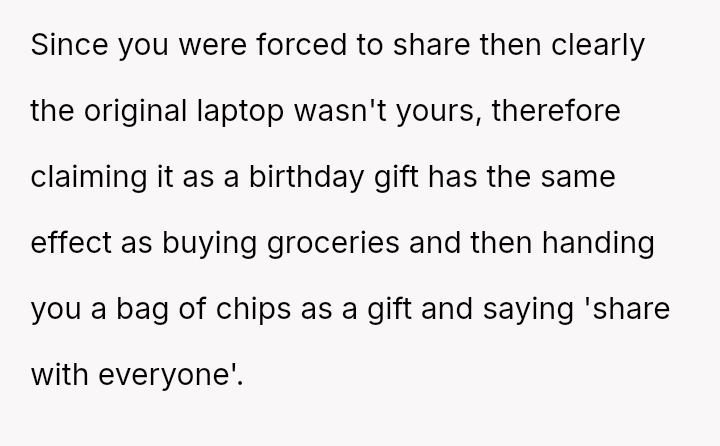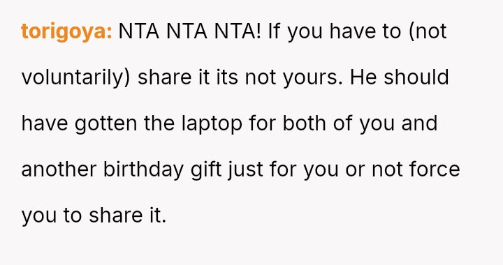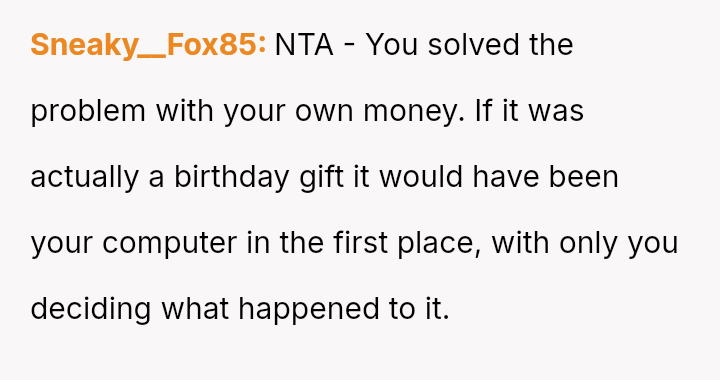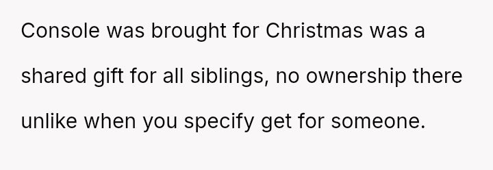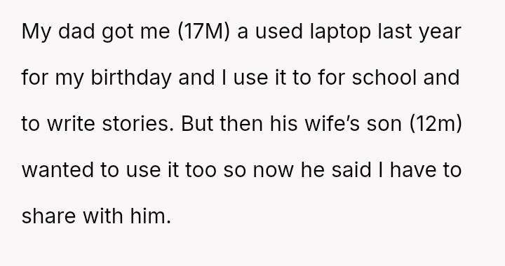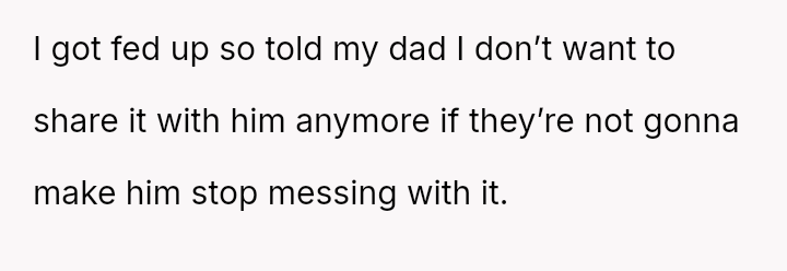 The original poster (OP) felt that their property, given as a birthday gift, was being misused and damaged by a stepsibling, leading to a conflict with their father over usage rights.