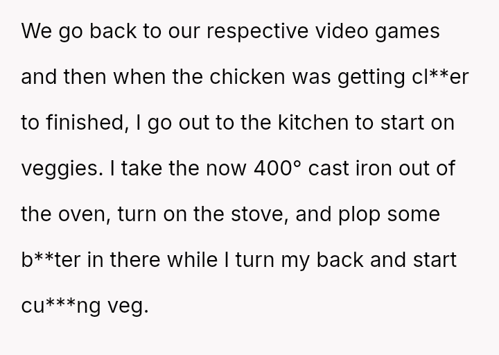 As the smell of roasting chicken filled the air, a split-second decision left fingers scorched and emotions simmering.