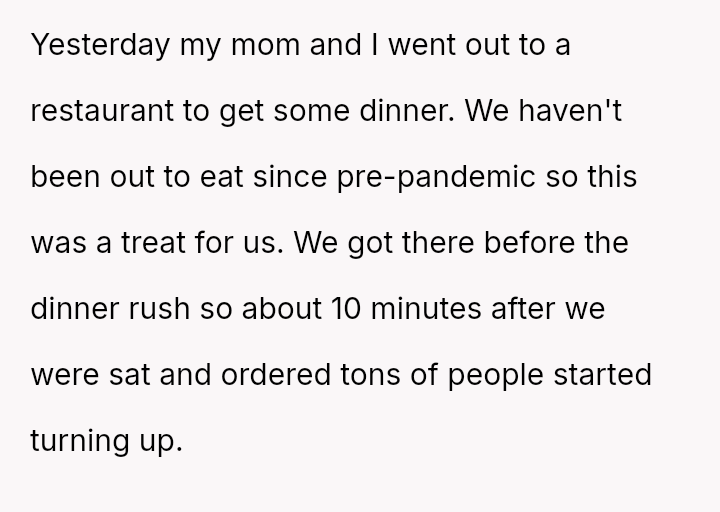 In a quiet moment meant for connection, a mother and child stepped out for a rare dinner, hoping to savor more than just food — a brief escape from the pandemic's shadow.