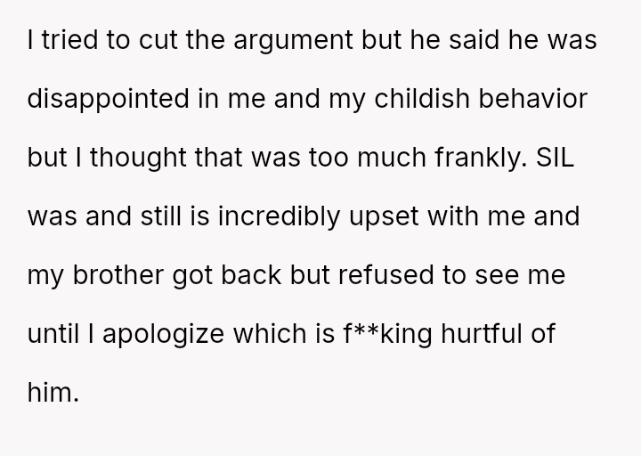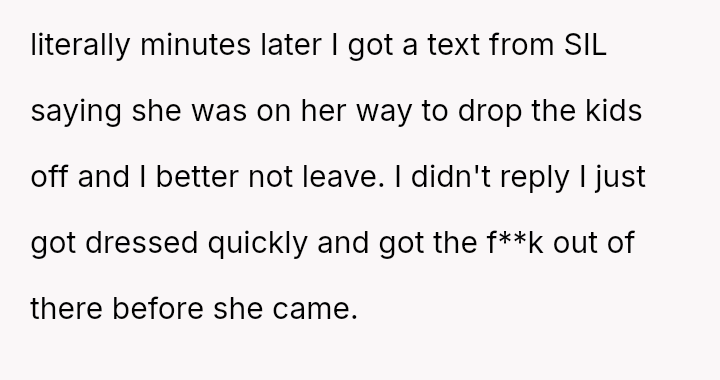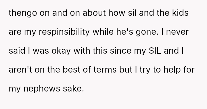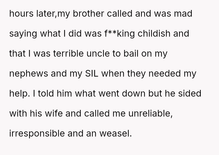 Despite an already strained relationship with his sister-in-law, he ultimately refused a request to babysit and left his home to avoid dropping off the children, leading to an intense confrontation with both his sister-in-law and his brother.