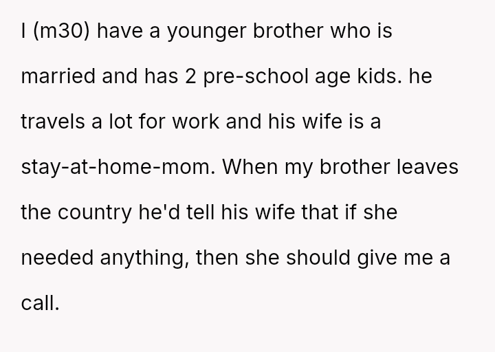 A man found himself caught in the crossfire of loyalty and obligation, torn between his own life and the relentless demands placed upon him by his brother’s wife.