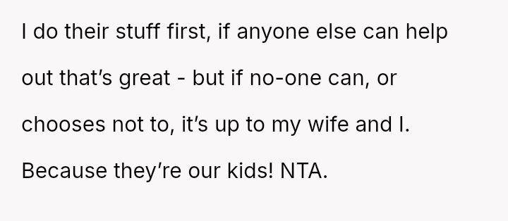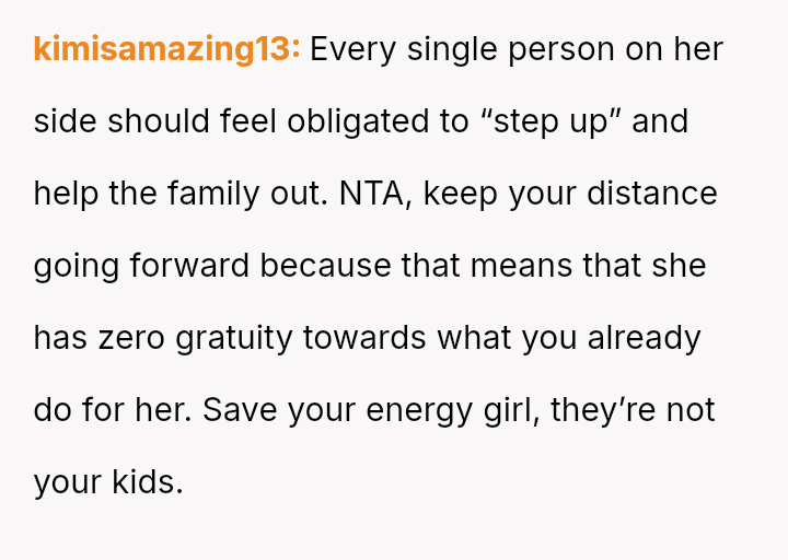 The OP prioritized their mental health and prior commitment, leading to accusations of selfishness from their sister and pressure from certain family members who believe family duty overrides personal plans.