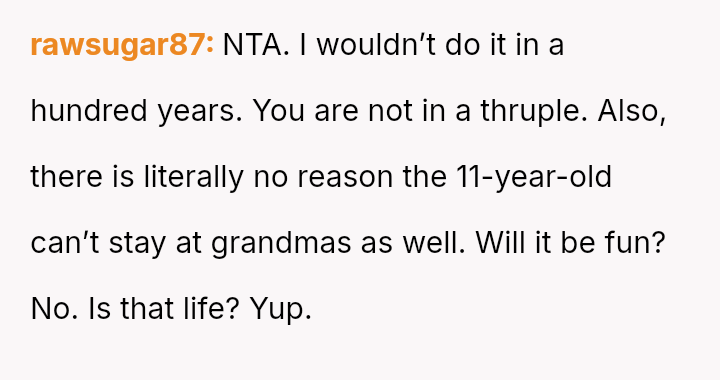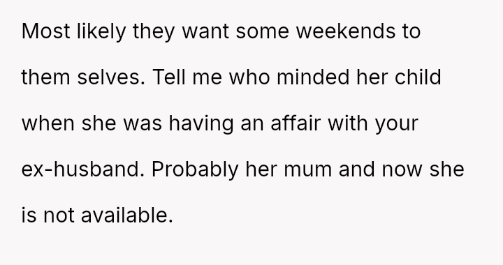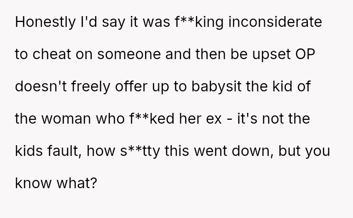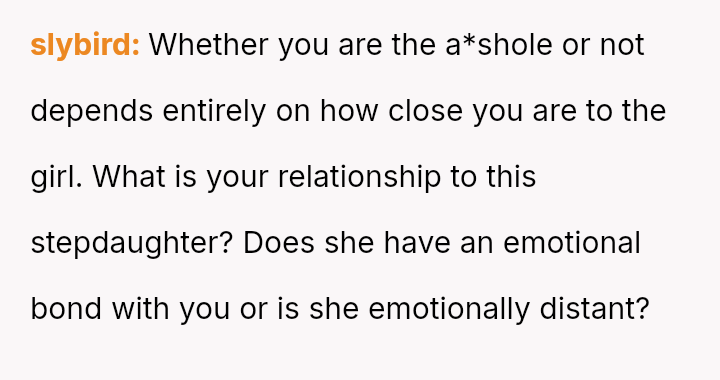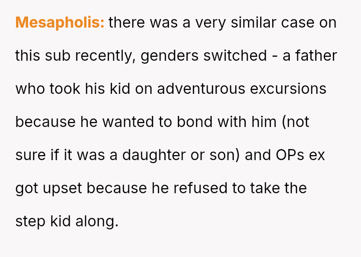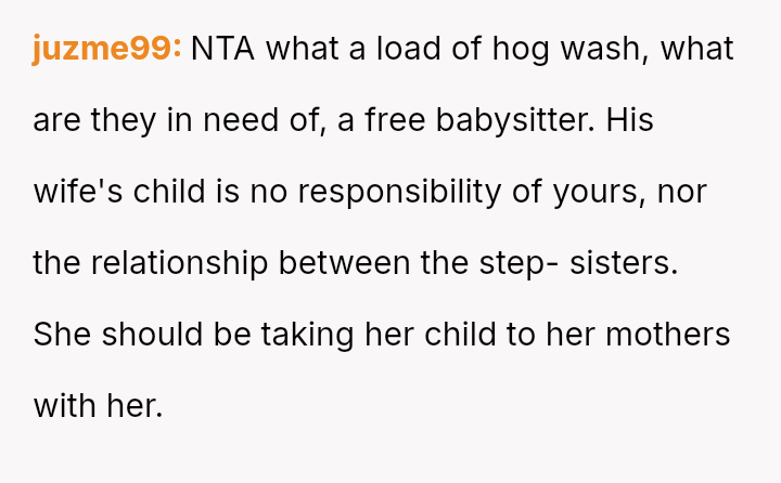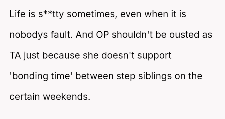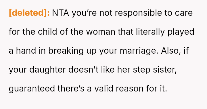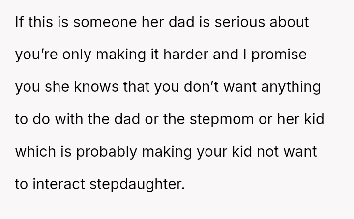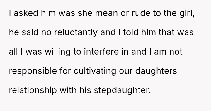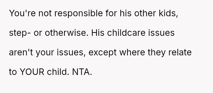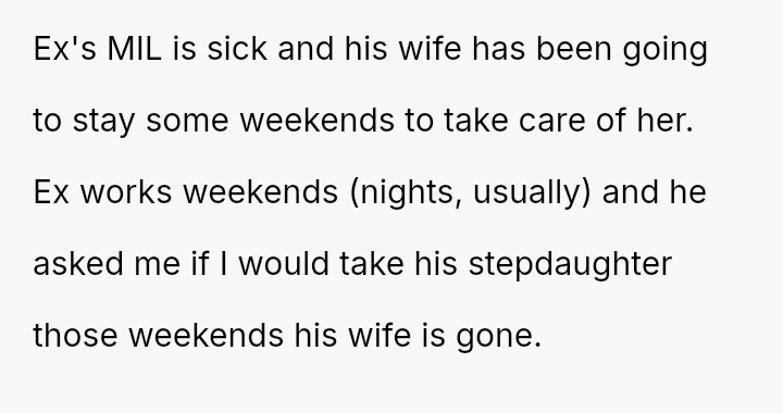 The Original Poster (OP) es**blished a firm boundary against a*suming responsibility for her ex-husband's stepdaughter during his wife's absence.