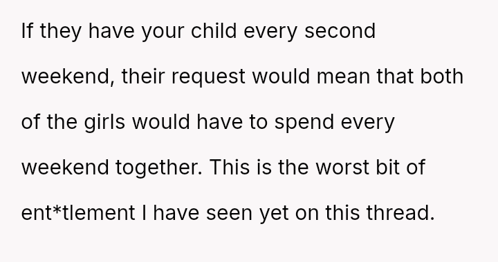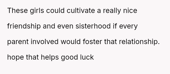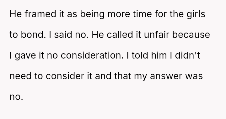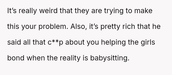 Amid the tangled emotions, the ex’s attempt to engineer a bond between the girls feels less about connection and more about control.