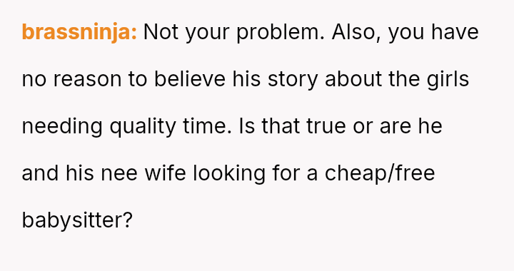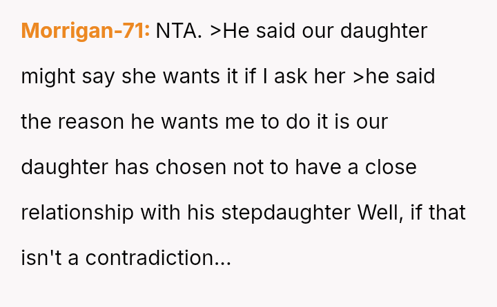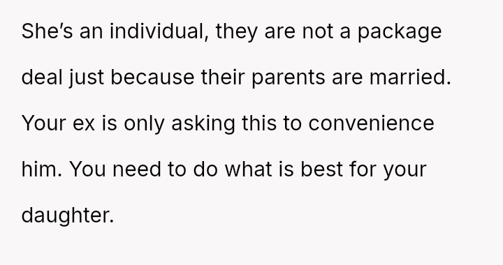 Was the OP justified in refusing to take on occasional childcare duties for her ex-husband's stepdaughter when the request was framed as a means to improve her own daughter's social dynamics, or should she have considered helping the family during a time of need?