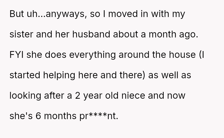 In the midst of sleepless nights and relentless demands, the sister’s spirit is stretched thin, caring for a toddler and carrying a new life while facing a partner who shirks his share of the burden.