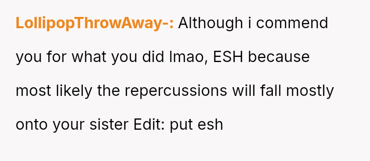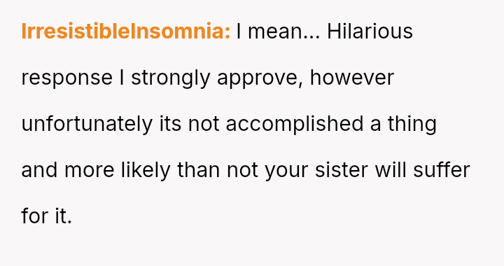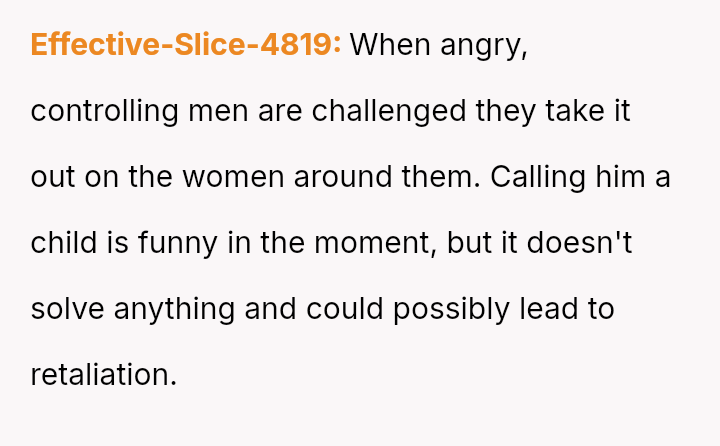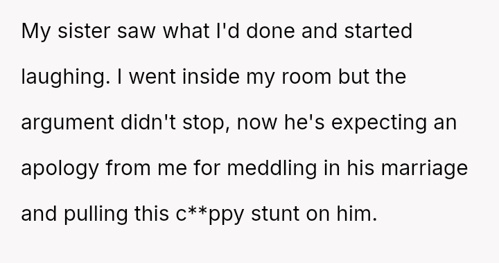 This action, while satisfying an immediate desire to confront perceived unfairness, escalated the existing marital tension and introduced a new conflict directly involving the OP.