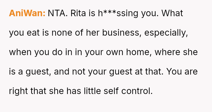 Is the OP justified in prioritizing their documented health needs and refusing to alter their d*et based on the emotional reactions of a non-resident guest, or does the social responsibility in a shared living situation require the OP to moderate their visibility to avoid causing significant distress to others?