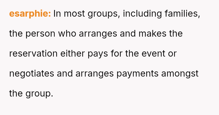 This reservation came with an expectation that the OP and their vegetarian wife would cover the entire cost for the group.