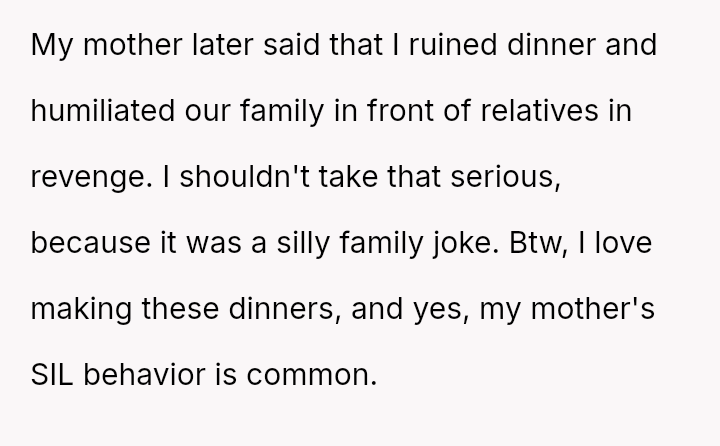 Their meticulous spreadsheets and relentless organization turned frustration into celebration, earning respect and praise from even the most skeptical relatives. This half-yearly dinner was no different.
