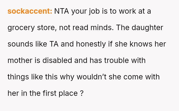 Does the responsibility for a failed transaction lie primarily with the employee who made a reasonable effort to interpret non-verbal cues, or with the system that allows a customer with such profound needs to shop alone without adequate support or pre-es**blished communication protocols?