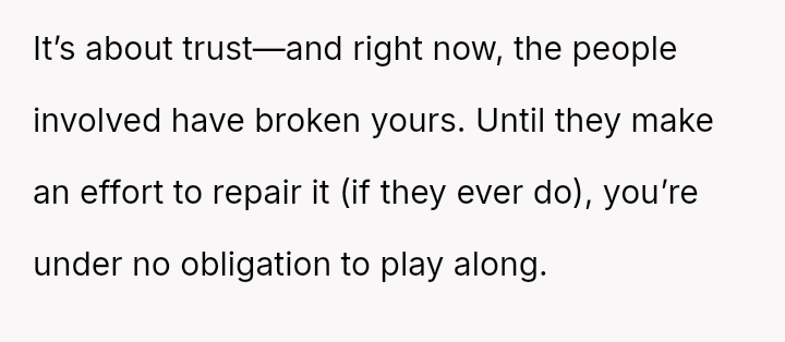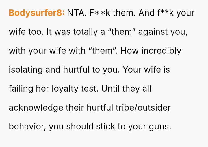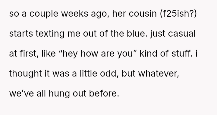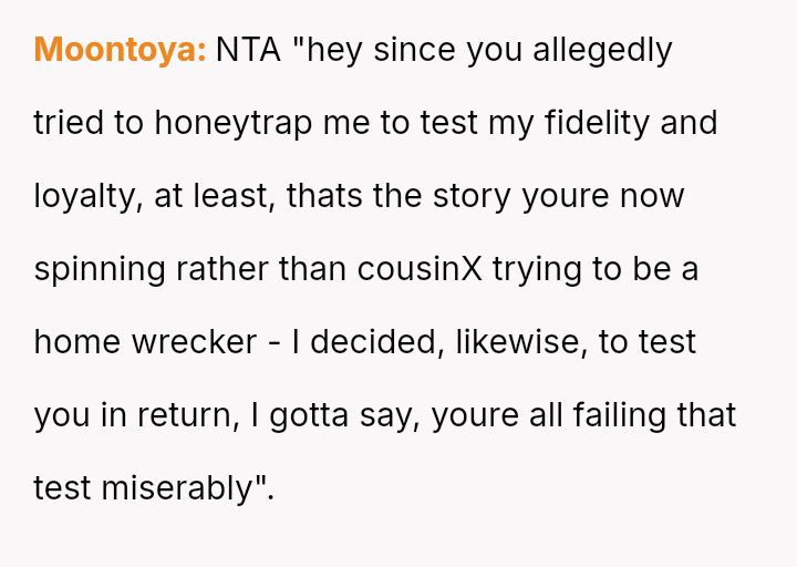 The original poster (OP) experienced a significant boundary v***ation when his wife's family orchestrated a situation where his cousin-in-law attempted to initiate flirtatious contact to test his fidelity.