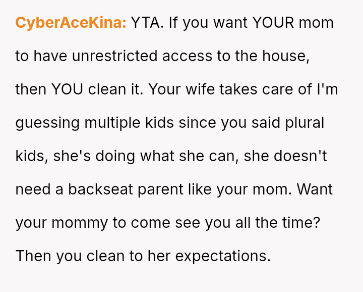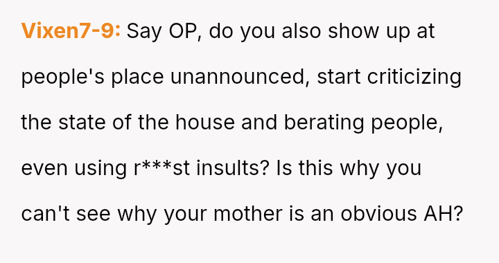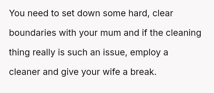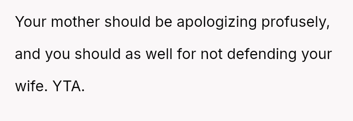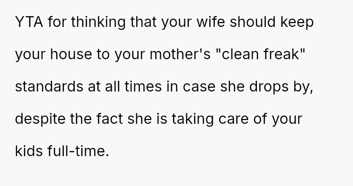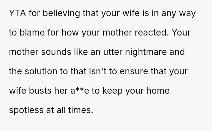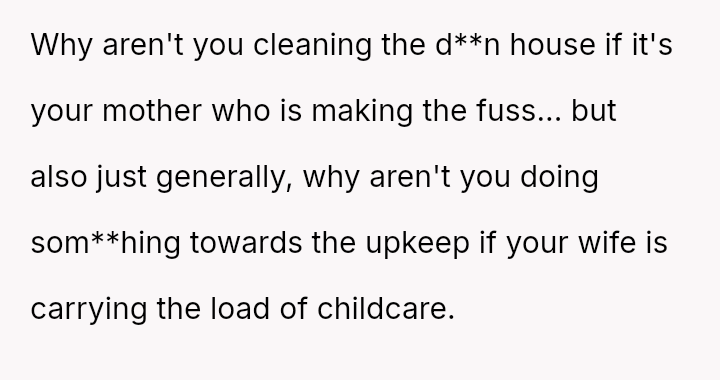 The original poster (OP) finds himself caught between his wife, who demands an apology from his mother for verbally abusive comments made during an unannounced visit, and his mother, whose high standards for cleanliness led to the conflict.