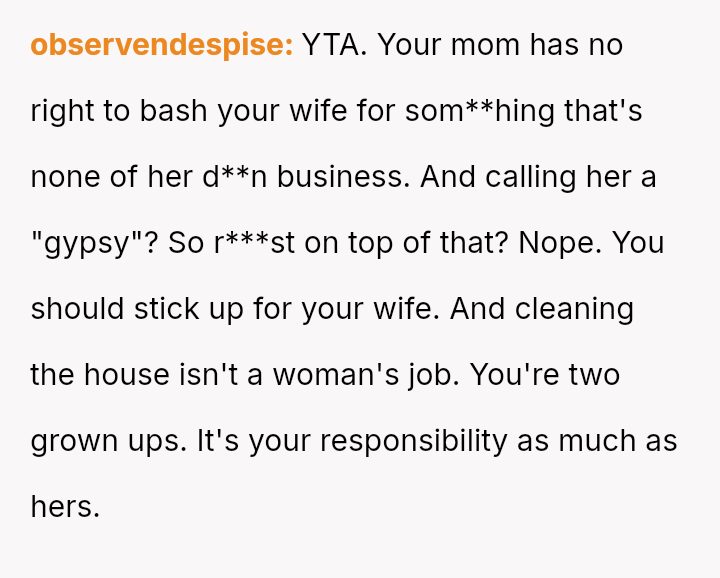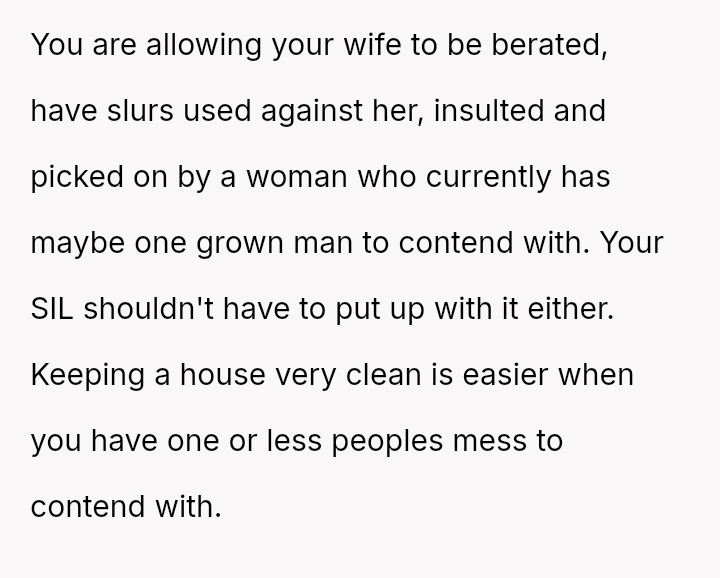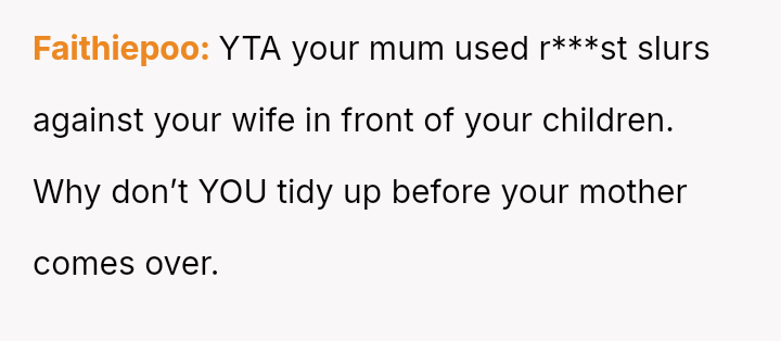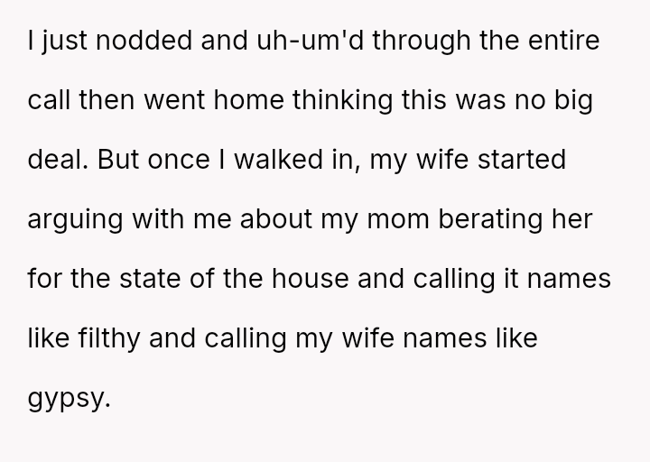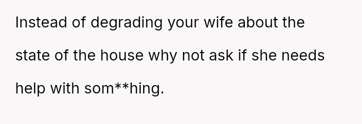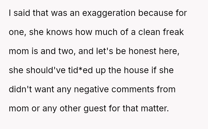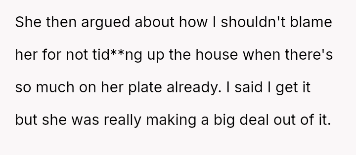 The OP initially minimized his wife's distress and suggested she was partially responsible for not cleaning, escalating the situation rather than validating his wife's feelings.