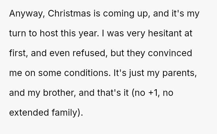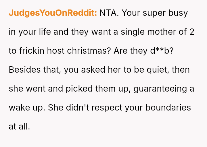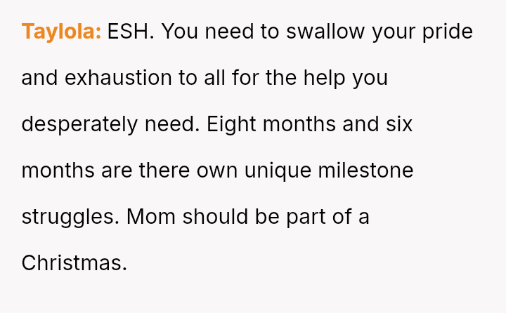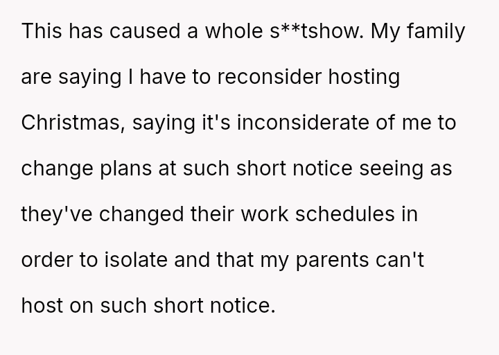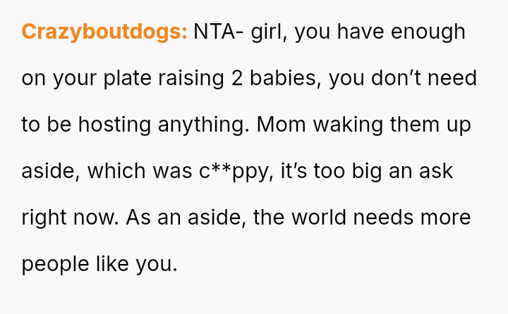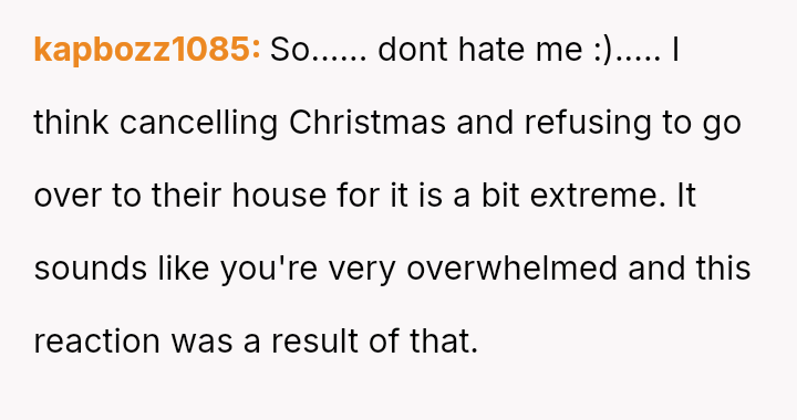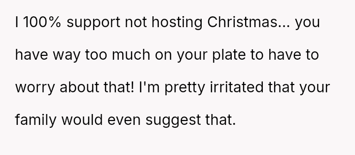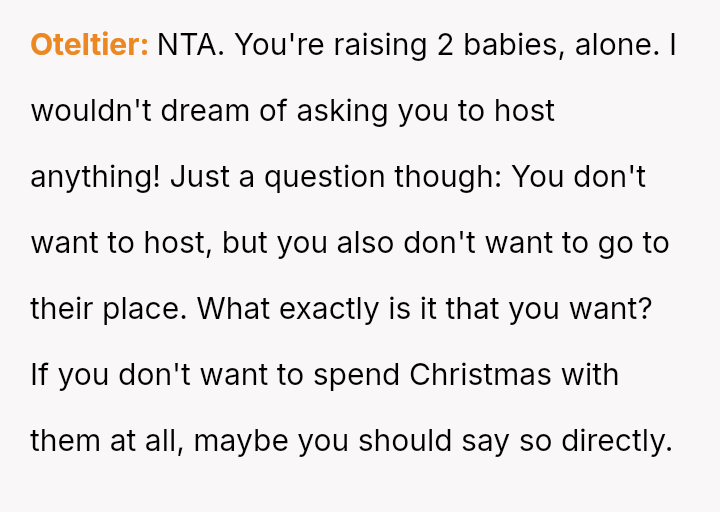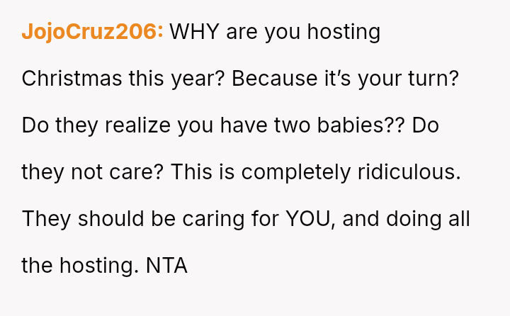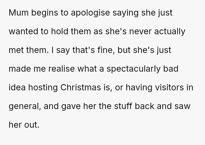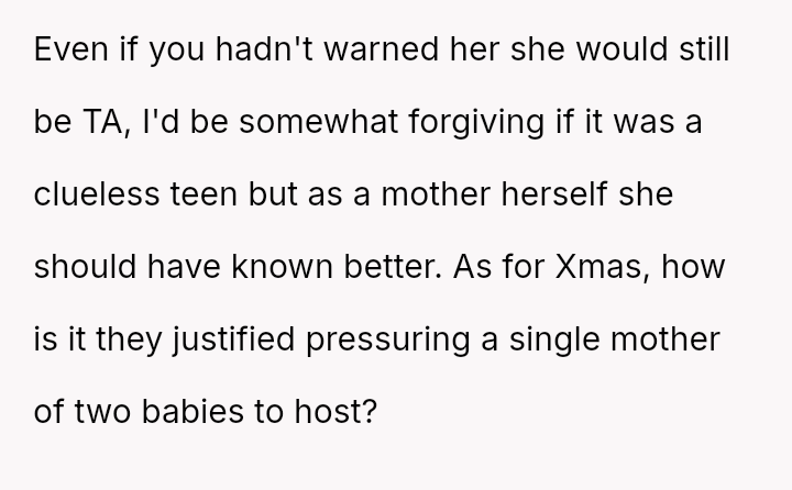Her decision to rescind the agreement to host Christmas was a direct response to a boundary v***ation by her mother, which confirmed her fears about managing visitors while caring for infants.