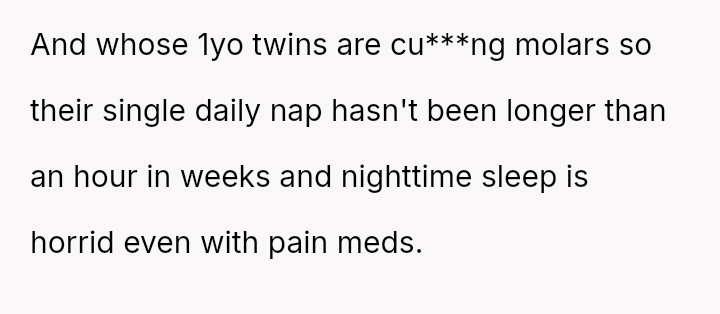 The original poster (OP) is facing immense stress while single-handedly raising two very young children under difficult circumstances.