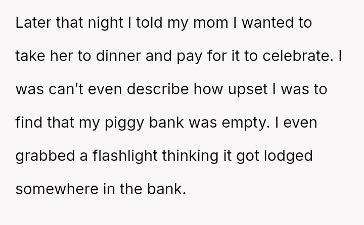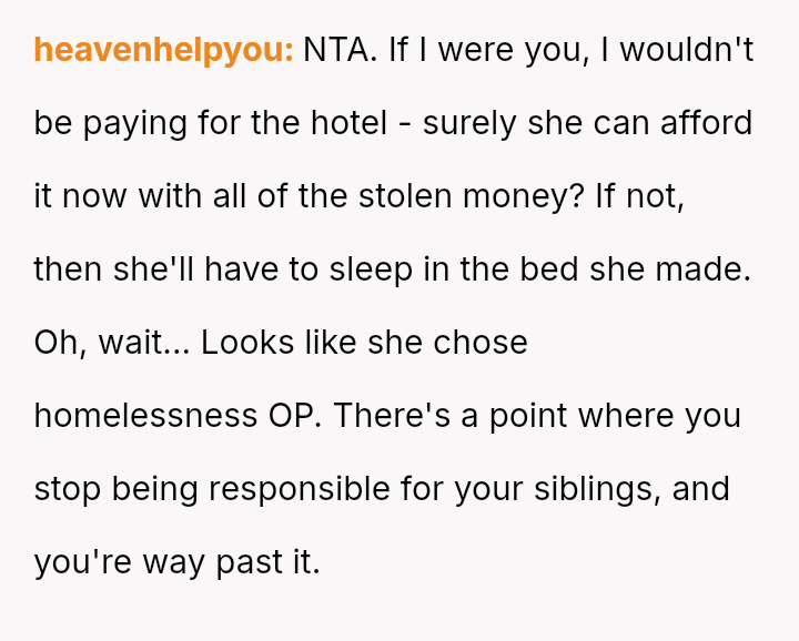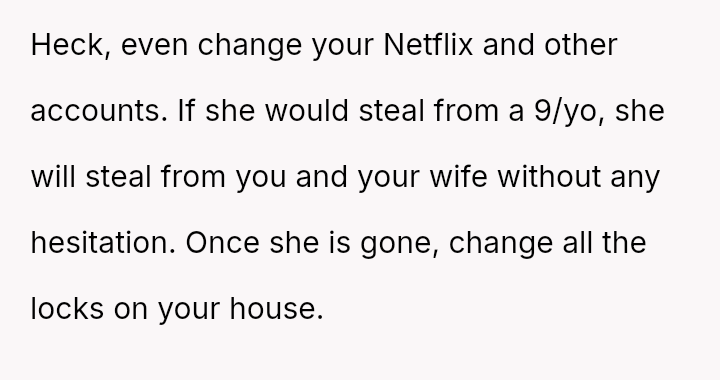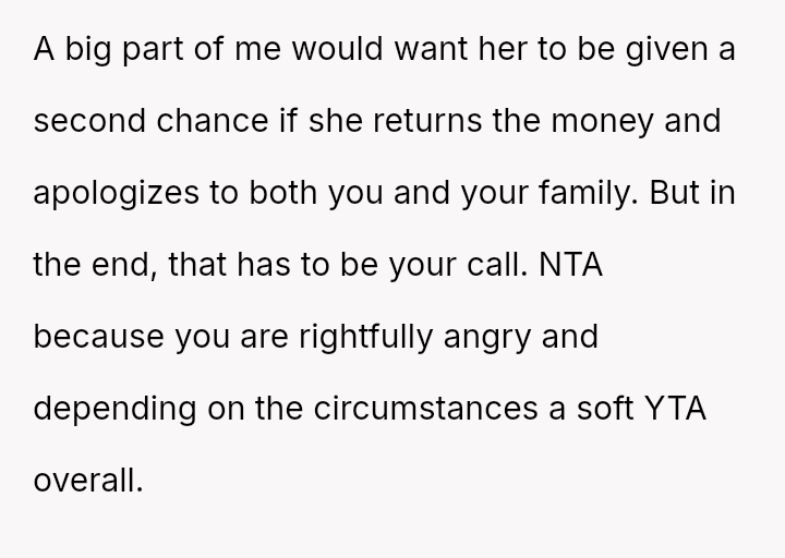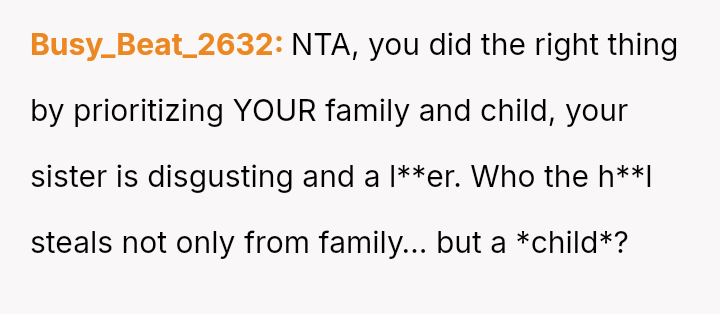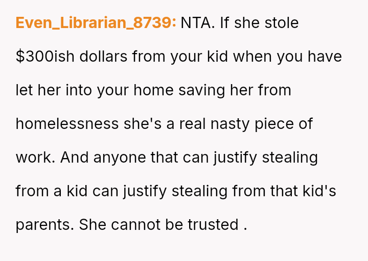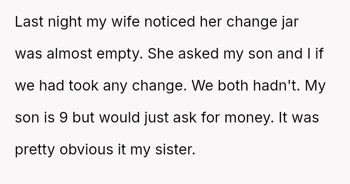 The original poster (OP) experienced a severe breach of trust and security when his sister allegedly stole money from his son's piggy bank while being housed in his home.