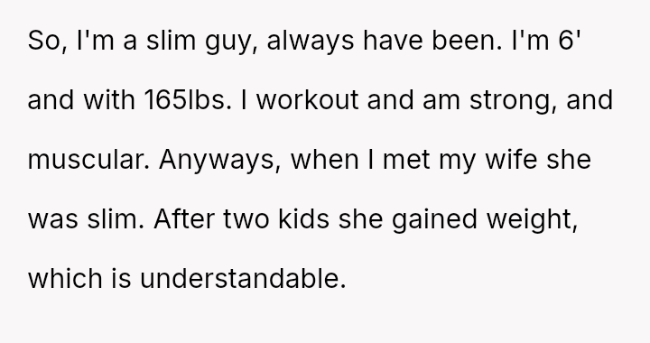 But the constant jabs from his wife about his slim stature slowly chipped away at his confidence, turning moments meant to be lighthearted into silent battles of hurt and resentment.