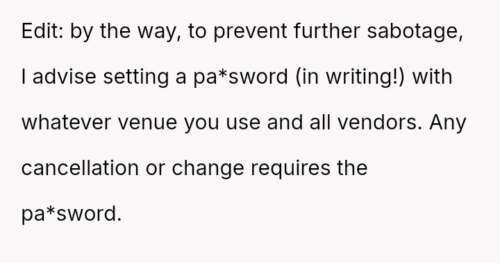 The original poster (OP) is angry and feels victimized after their stepsister impersonated them to cancel a valuable wedding venue reservation, leading to a ma*sive price increase.