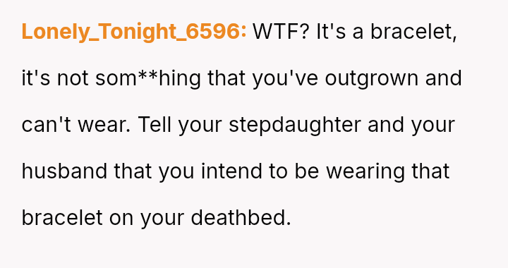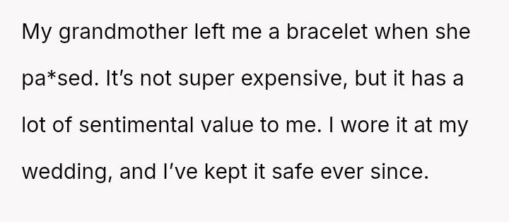 The original poster (OP) is experiencing significant emotional distress because a deeply sentimental item, a bracelet inherited from their grandmother, is the subject of a serious conflict within their family.