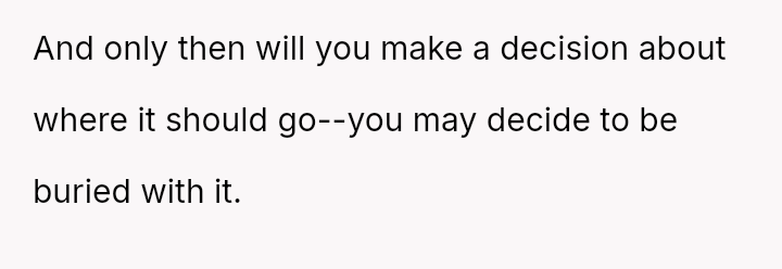 The debate centers on whether sentimental objects must yield to perceived familial obligation when a concrete promise was never made.