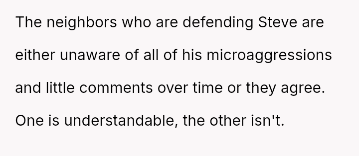 Each comment from Steve, a neighbor whose words cut deeper than intended, forces her to confront the harsh reality that acceptance is not always as unconditional as it appears.