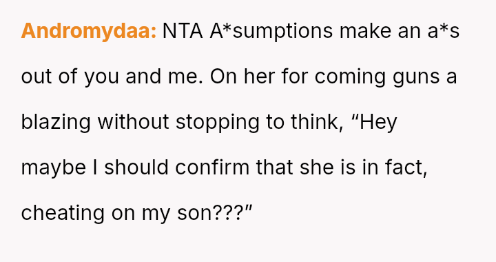 Or was the MIL entirely out of line for showing up unannounced and immediately leaping to the conclusion that the OP was cheating, regardless of the couple's prior deceptions?