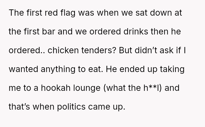 Ignoring the warnings of her friends, she found herself trapped in awkward silences and unsettling conversations that revealed a side of him she never wanted to see.