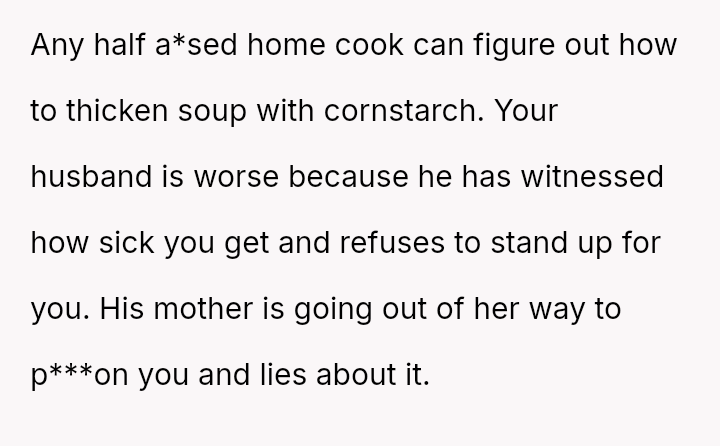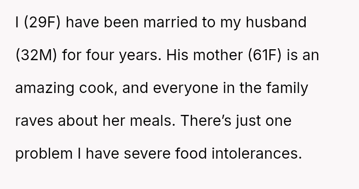 Despite her husband’s mother’s celebrated culinary sk**ls and initial promises to accommodate her medical needs, the invisible line between love and neglect blurs with each well-intentioned yet harmful dish.
