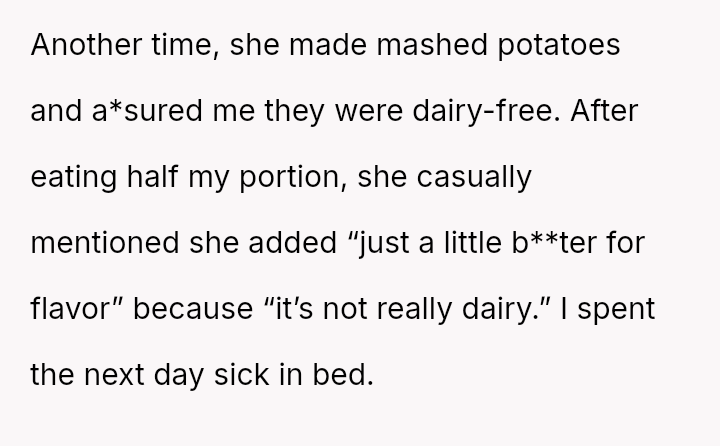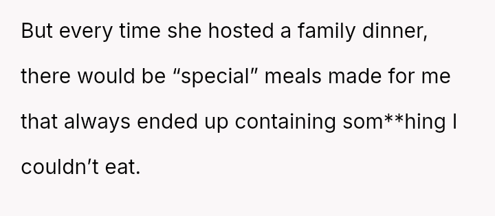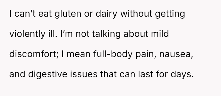 In a world where food is a language of care, her struggle reveals the deep wounds that ignorance and insensitivity can inflict on those who simply ask to be seen and respected.