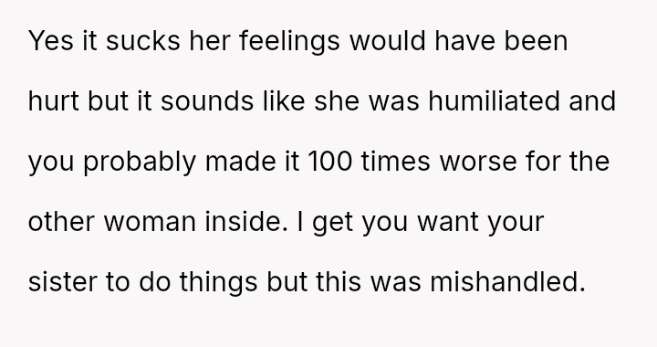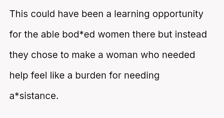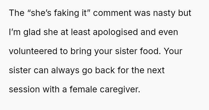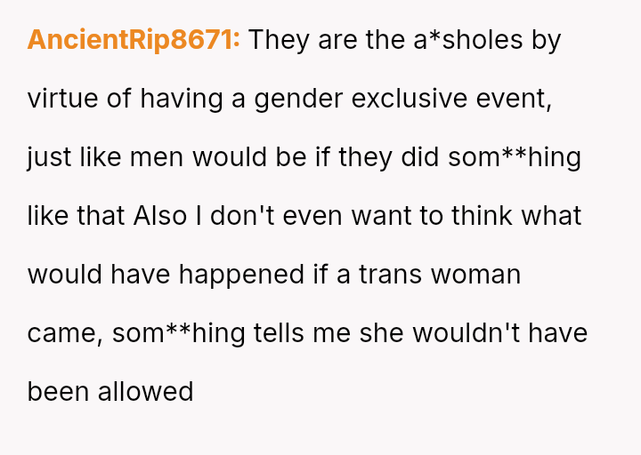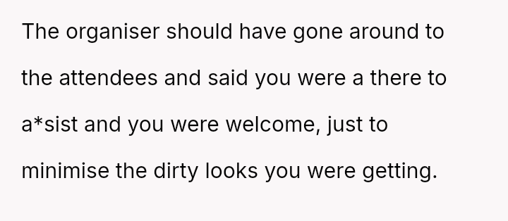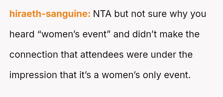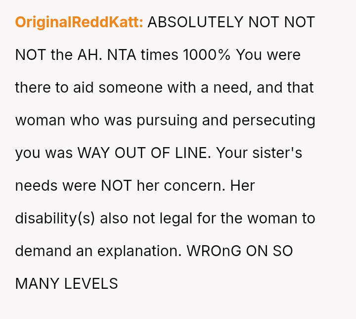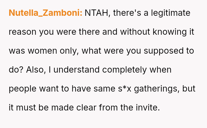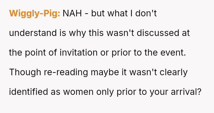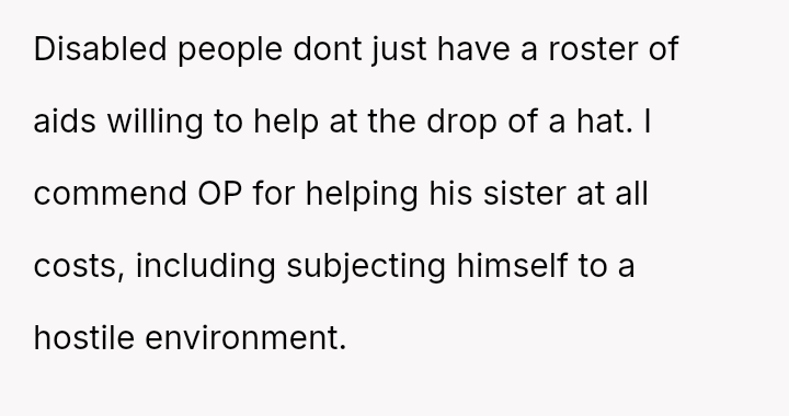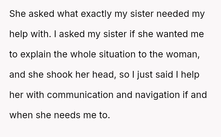 The original poster (OP) acted as an advocate for their disabled sister, insisting on remaining at the event to provide necessary support, which directly conflicted with the expectations of some attendees who felt the OP's presence v***ated the 'women's only' rule and caused discomfort.