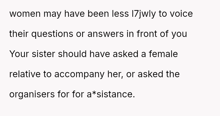 Was the OP justified in prioritizing their sister's need for support over the event's stated gender restriction, or should the OP have respected the boundaries of the women-only event and insisted their sister find a female companion for future outings?