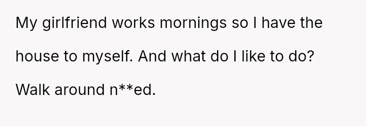 In the quiet solitude of the morning, he revels in the freedom of being alone, embracing the simple joy of walking through his home unencumbered by clothes or worries.