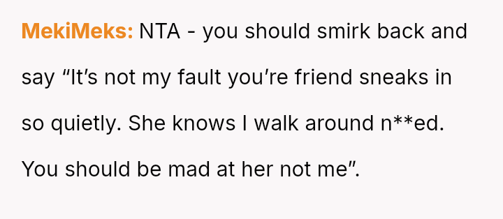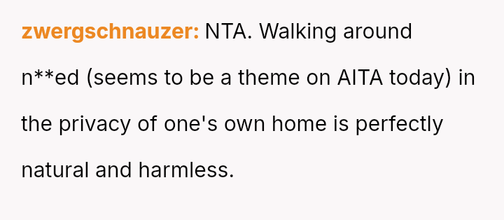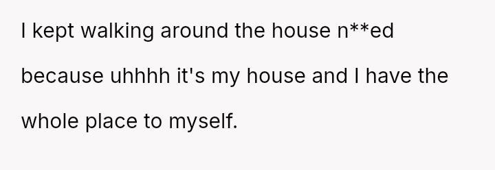 The original poster (OP) feels ent*tled to walk around n**ed in their shared home when alone, viewing this as a personal right.