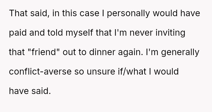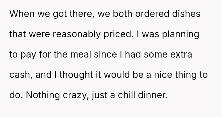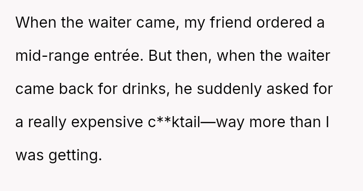 What began as a shared plan for a modest dinner soon revealed the fragile boundaries of trust and expectation between two friends, as unspoken desires and silent disappointments quietly surfaced over the clinking of gla*ses.
