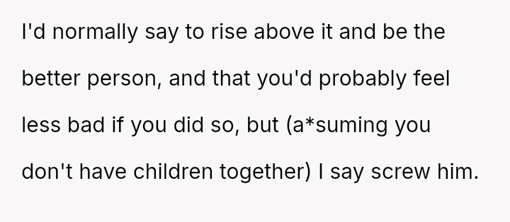 The original poster (OP) is facing a conflict between seeking full legal satisfaction and acting out of a desire for retribution against her ex-husband for years of non-compliance and destructive behavior regarding a court-ordered financial settlement.