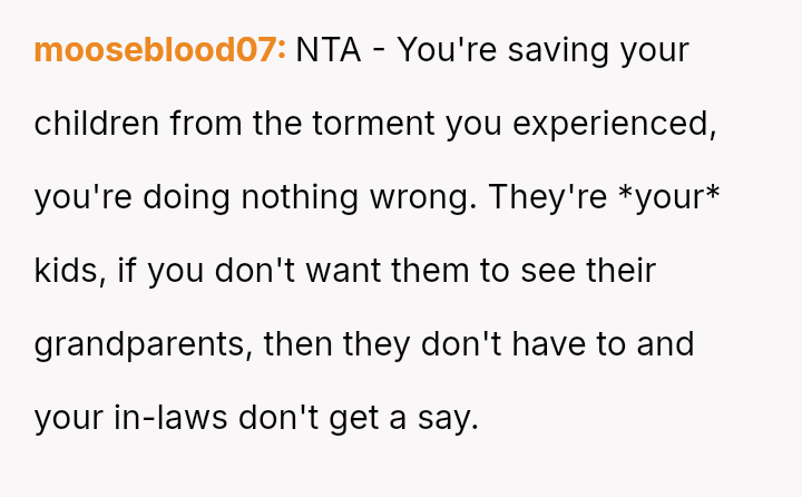Considering the OP's drastic step of banning contact to protect their children's autonomy, is this protective measure justified, or has the conflict escalated beyond a necessary boundary setting?