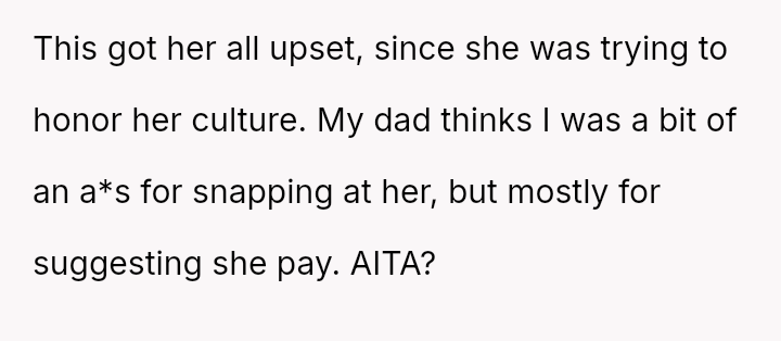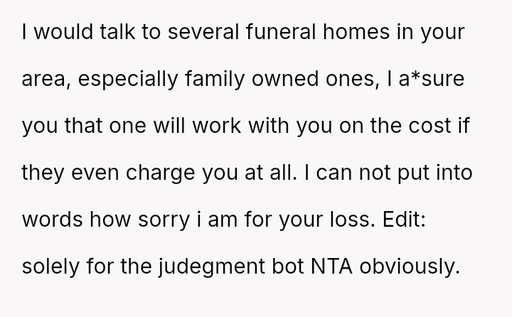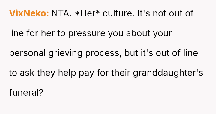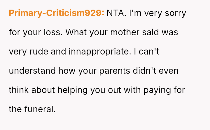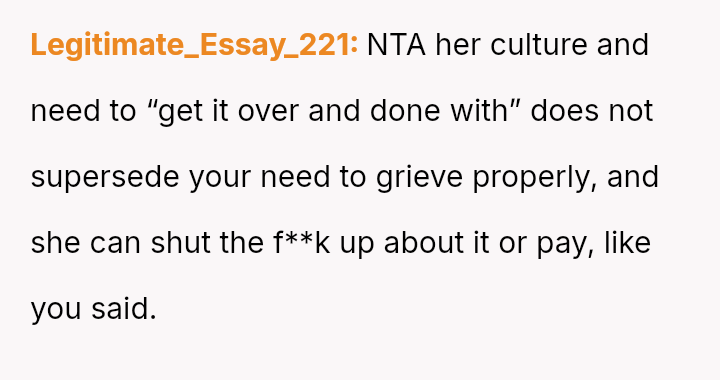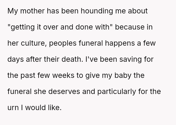 Given the immense emotional burden and the cultural differences in grieving, was the OP justified in aggressively demanding their mother pay for the funeral when she pressed for sp*ed, or did this outburst unfairly weaponize their financial struggle against the mother’s cultural desire to show respect?