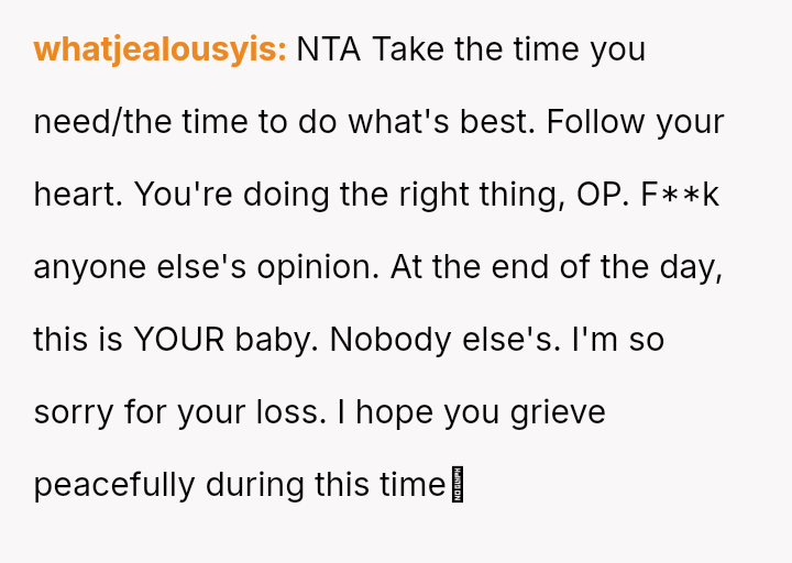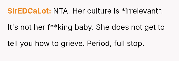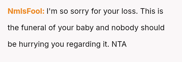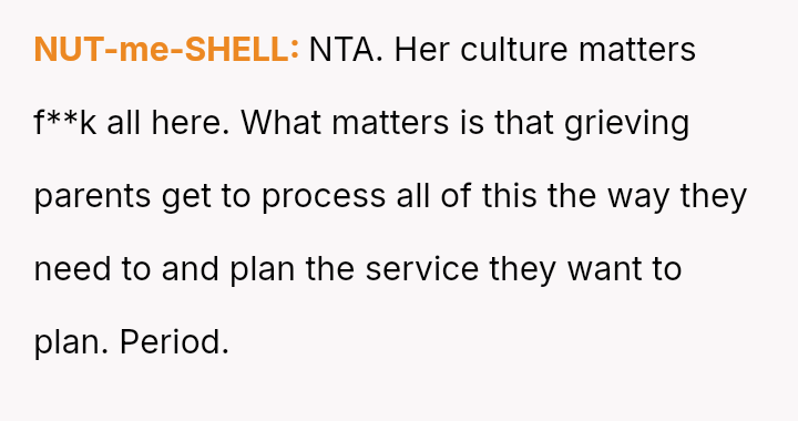 Which perspective deserves more consideration in this immediate crisis: the grieving parent's timeline or the cultural imperative for swift ceremony?