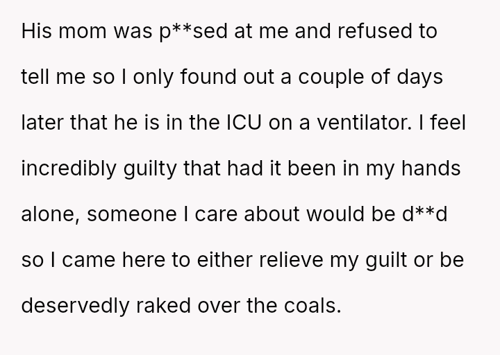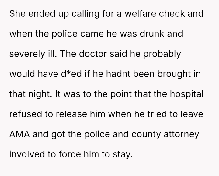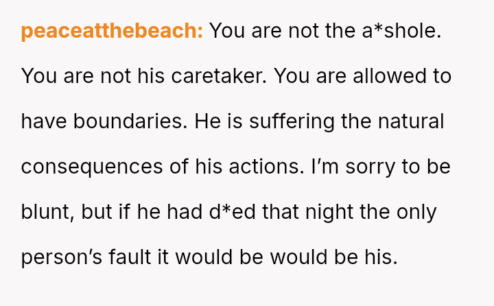 Was the poster justified in prioritizing their own need for rest and refusal to engage further in caretaking behaviors, despite the near-fatal result, or did the historical relationship and acknowledged concern override the right to maintain strict personal boundaries in that moment?