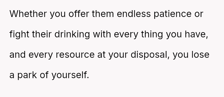 Despite their separation, the fragile threads of their bond kept them close, but each night brought a new battle with his drinking — a battle that left her exhausted, heartbroken, and desperately worn down.