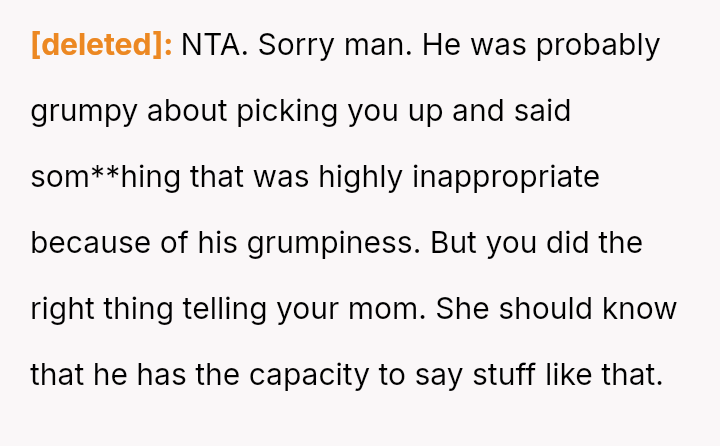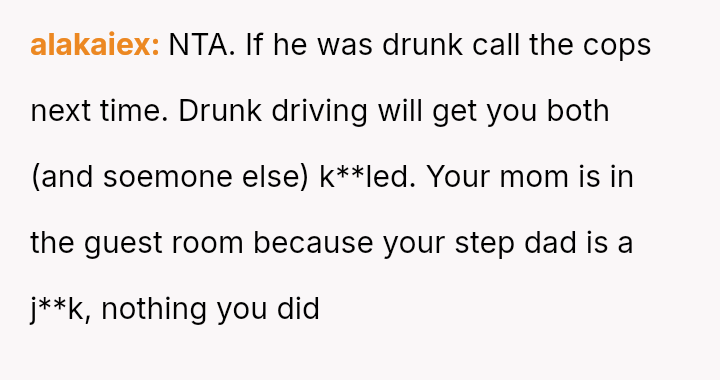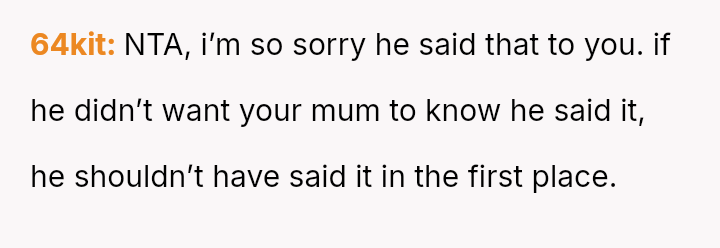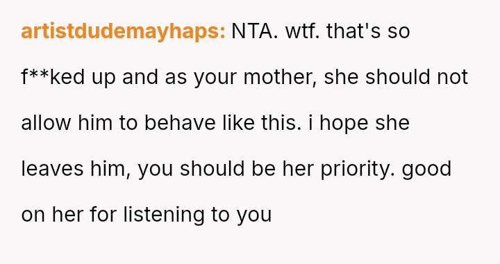 The original poster is dealing with the emotional fallout of a deeply hurtful comment made by their stepfather, leading to conflict between the parents.