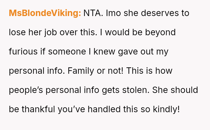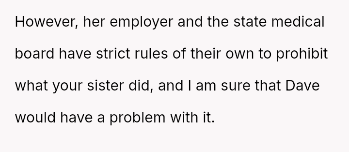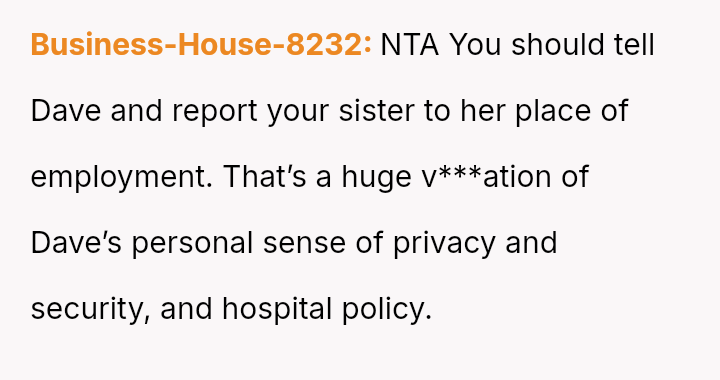 This action caused immediate tension, with the sister reacting negatively and other family members suggesting the OP should have remained silent to maintain peace.
