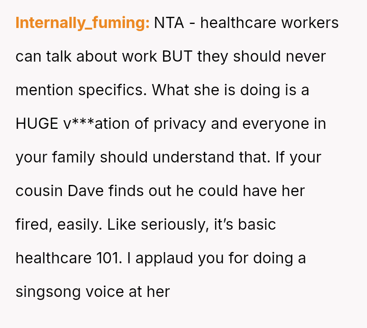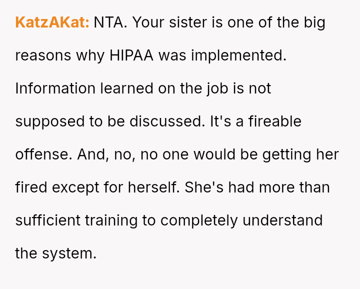When the sister, confident in her healthcare role, casually exposed private medical details about a relative, it wasn’t just a breach of confidentiality—it was a painful reminder of boundaries crossed and trust broken.